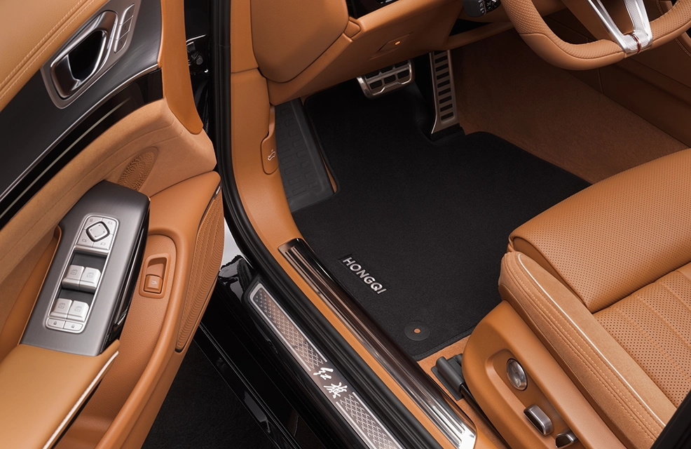 Przedni grill to wyraz elegancji i siły, podkreślający tożsamość Hongqi. Charakterystyczny, chromowany wzór inspirowany tradycyjną chińską estetyką i wysokimi wodospadami. Jego szeroka, dynamiczna forma nie tylko przyciąga wzrok, ale także harmonijnie komponuje się z linią nadwozia.